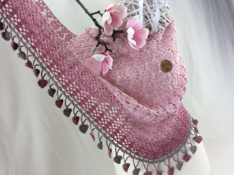 Das Dreieckstuch "Magnolienherz" ist ein leichtes luftiges Tuch.
