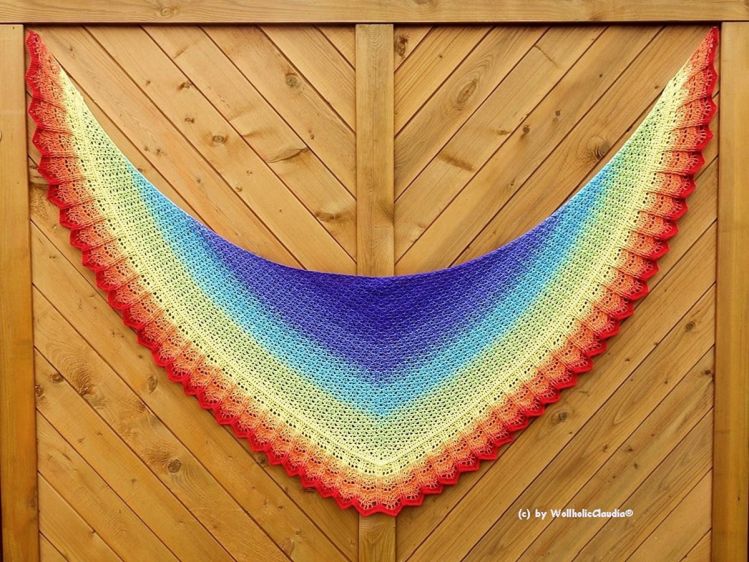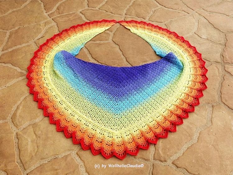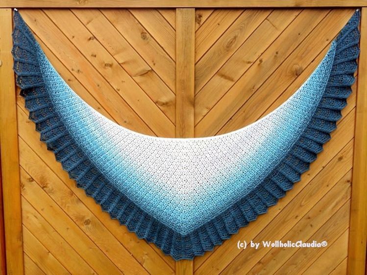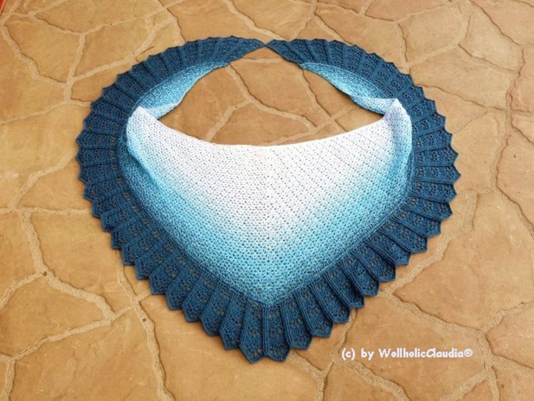 Dieses sichelförmige Tuch ist ein absoluter Hingucker. Es kann mit jedem Garn und der dazu passenden Nadelstärke angefertigt werden.