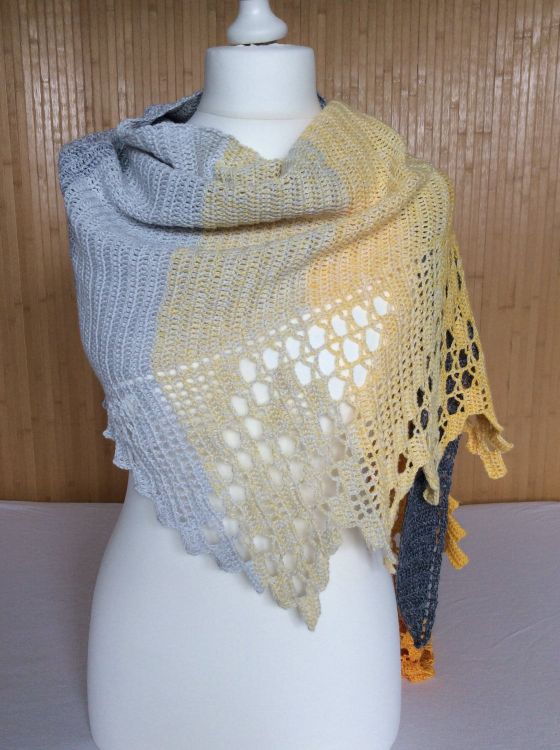 Häkelanleitung für das Dreieckstuch "Sun Of Light Grey"