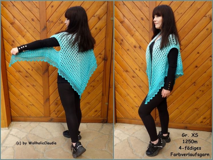 Der Materialverbrauch ist abhängig von der Garnstärke, der Nadelstärke, der Größe und Länge der Weste!