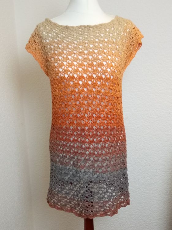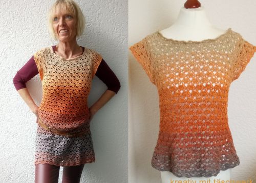 Diese Tunika passt über ein T-Shirt oder Trägertop. Auch im Urlaub, über Bikini und Badeanzug, sollte sie nicht fehlen. Es handelt sich um eine Raglan-von-oben Tunika mit Muschelmuster. Es ist KEINE Zipfelzunika. Sie kann, individuell an JEDE Größe, angepasst werden! Ab Brusthöhe nimmt sie an Weite zu und fällt so schön über die Hüften. Das geschieht sehr unkompliziert und einfach. Die Arbeitsweise ist nicht schwer und somit auch für Anfänger tauglich. Die Anleitung beinhaltet mehrere Häkelschriften, Text, Fotostrecke Anfang Halsausschnitt und Rundenübergang und ein Hilfsvideo zu den Fußschlingen (es kann auch mit Lutmaschen gearbeitet werden). Bei Fragen steh ich immer schnell zur Verfügung!