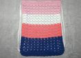 * Catona (Lauflänge 125m/50g): Rosa ca. 50g, weiß ca. 50g, dahlie ca. 50g, dkl.blau ca. 50g und ca. 40g in einer Farbe nach Wahl für die Kordeln.