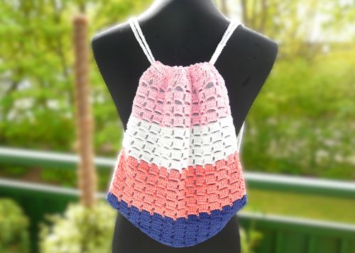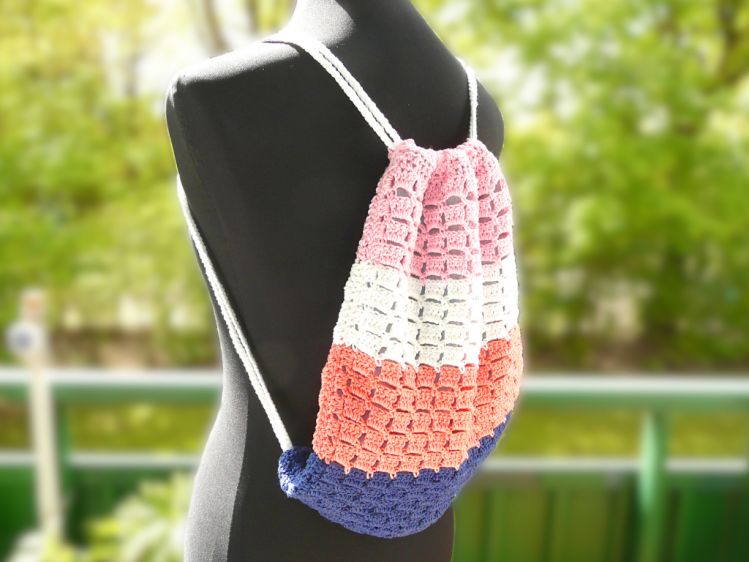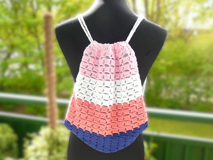 Je nach Garn- und Häkelnadelstärke variiert die Größe von dem Turnbeutel.