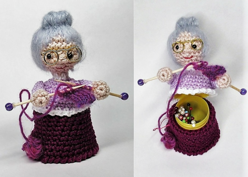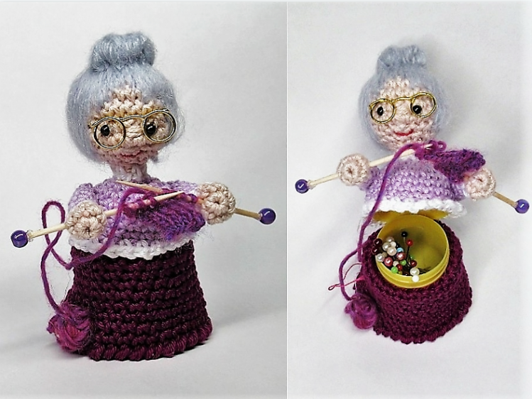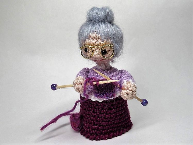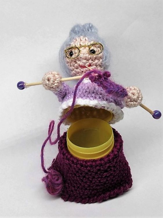 Die Ü-Ei-Oma wird um eine leere Kapsel von einem Überraschungsei gehäkelt. Man kann darin Kleinigkeiten wie Nähnadeln, Stecknadeln, Reißzwecke, Büroklammern oder Ähnliches aufbewahren oder darin eine kleine Überraschung für einen lieben Menschen verstecken. Die Oma kann sehr gut ausWollresten gehäkelt werden.