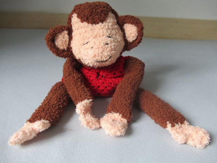 Der Körper von Bibo wird aus hitzeneständigem Baumwollgarn gehäkelt, für Kopf und Gliedmaßen habe ich Teddygarn (Phil douce von Phildar) verwendet.In der Anleitung gibt es viele Tipps, wie das Häkeln mit diesem Garn gelingt. Man kann aber auch Chenillegarn oder ein anderes dickeres, weiches Garn verarbeiten.