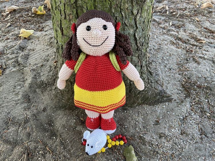 Sie hat sich extra schick gemacht und ist schon ganz gespannt aufs Lesen, Rechnen und Schreiben. Ihre Rechenmaus hat sie auch dabei, die das Rechnen im Zahlenraum bis 20 leichter macht.
