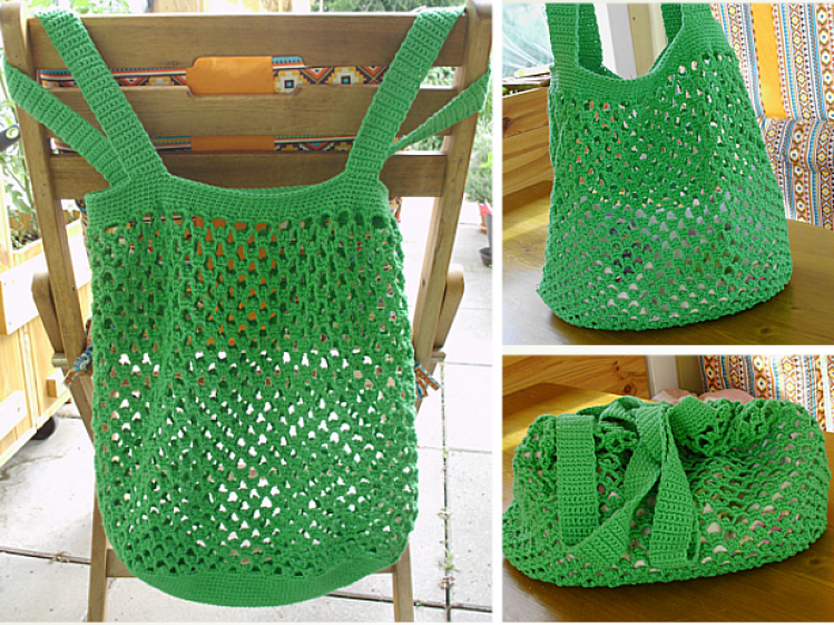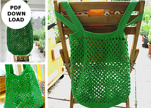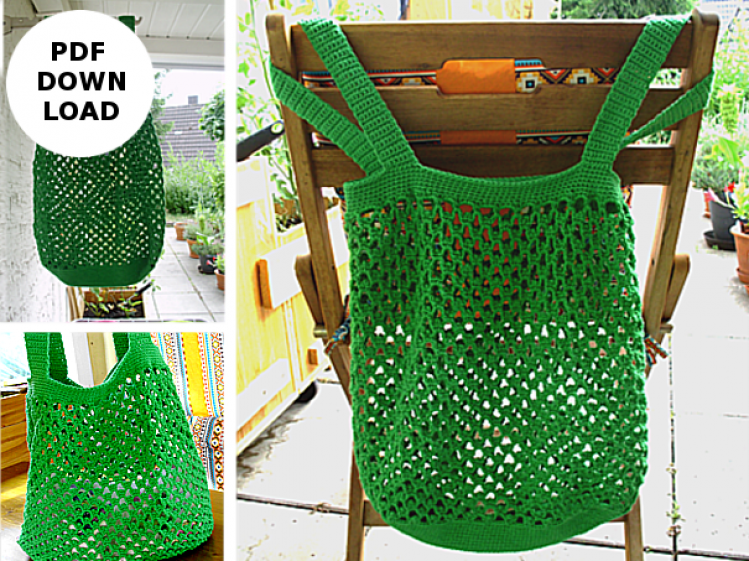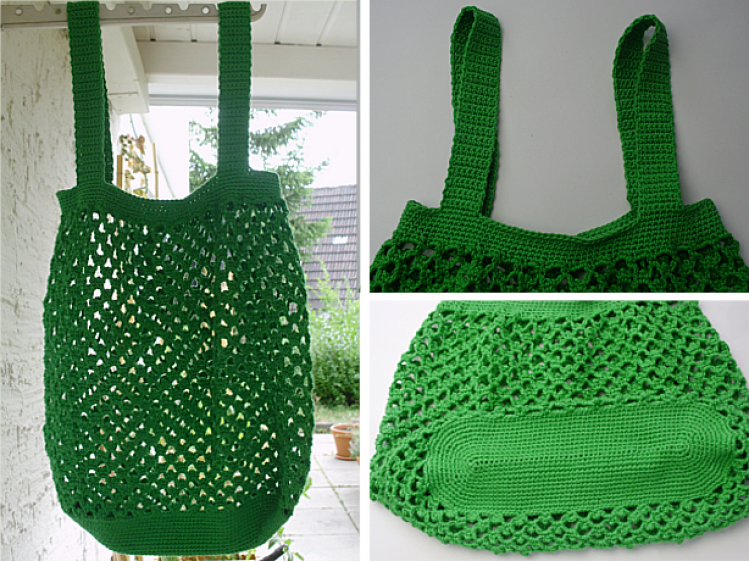 Dieses hübsche Häkelnetz ist nicht nur praktisch, sondern auch sehr umweltfreundlich, da x-fach wiederverwendbar, und dank der Baumwolle auch maschinenwaschbar. Den Boden ziert eine große Blume.