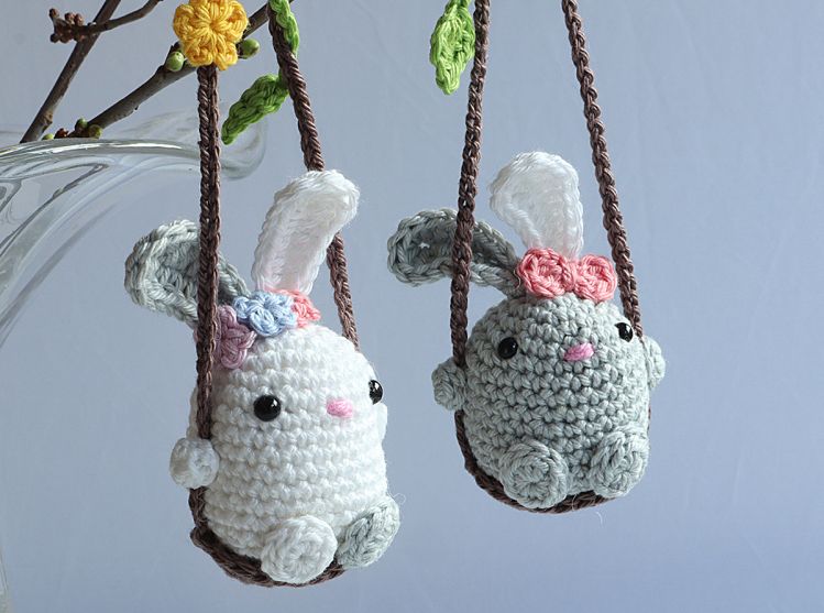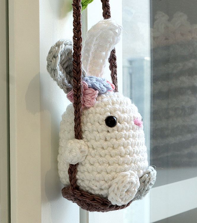 Egal ob am Osterstrauch, im Auto als Rückspiegelanhänger, in einer Zimmerpflanze schaukelnd, an einem Schrankgriff oder als Taschenbaumler, diese putzigen Häschen auf der Schaukel sind immer eine tolle Dekoration, welche die Menschen zum Lächeln bringt.