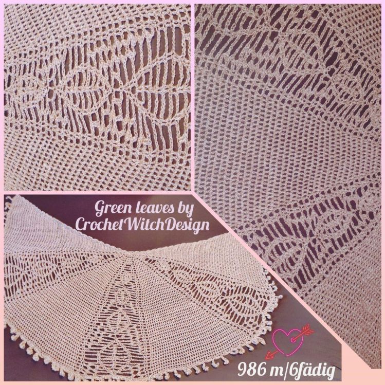 Green leaves ist ein halbrundes Tuch, für Groß und Klein. In 2 verschiedenen Längen häkelbar und somit ganz individuell für dich anpassbar.