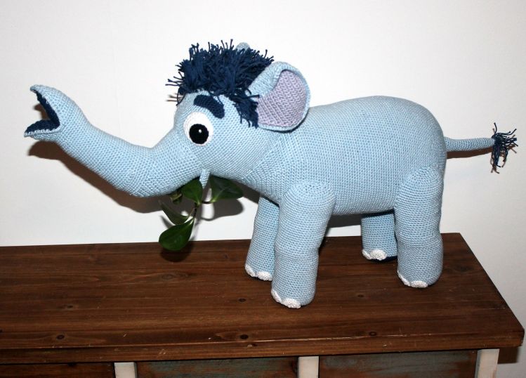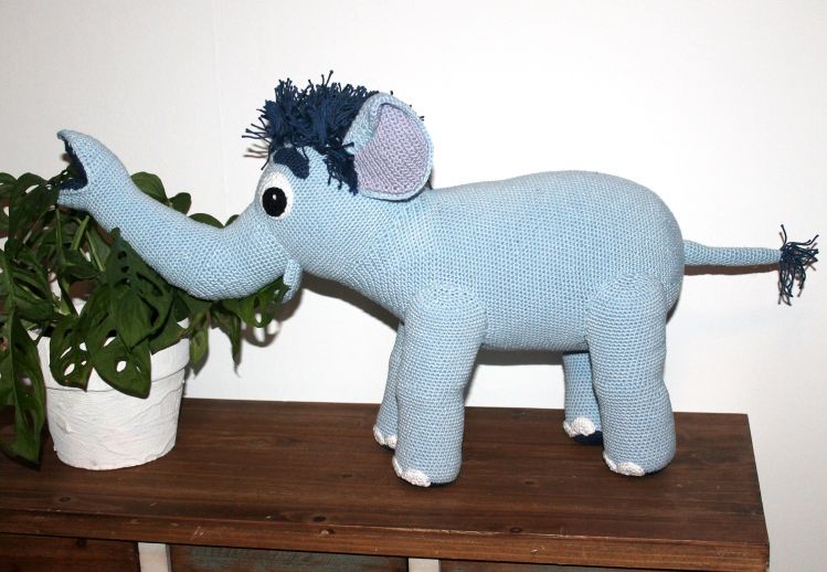 The crochet elephant will become about 70 cm/ 28 inches long and 30 cm/ 12 inches tall.
