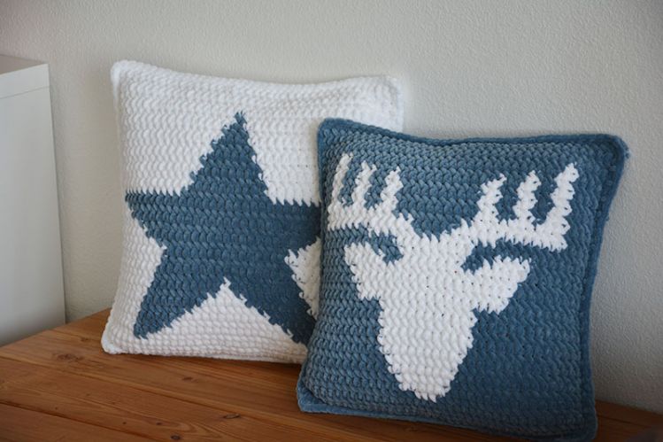 2er Set Hirsch und Stern Kissen Häkelanleitung 40 x 40 cm