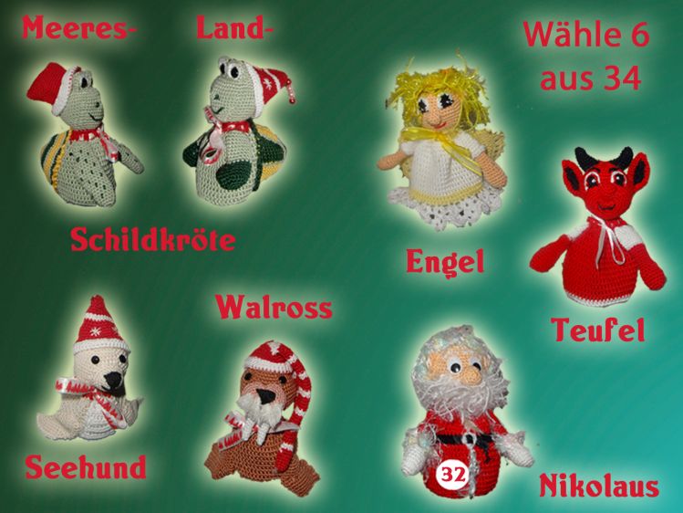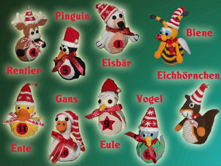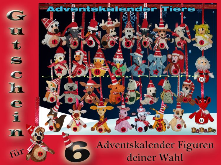 Oder du häkelst z.B. nur 12 Tiere und für die restlichen Türchen hängst du kleine Päckchen dazwischen!