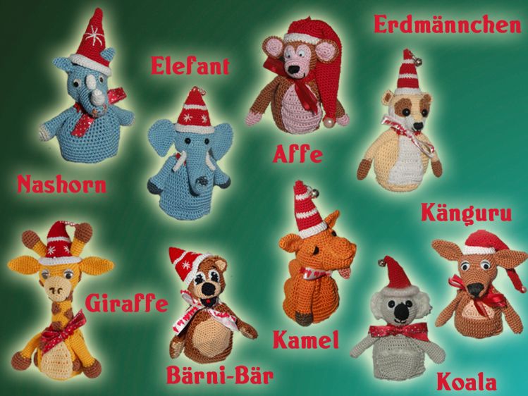 Die Tiere sind recht schnell gehäkelt, man kann auf Wunsch auch die Arme weglassen, damit es schneller geht!
