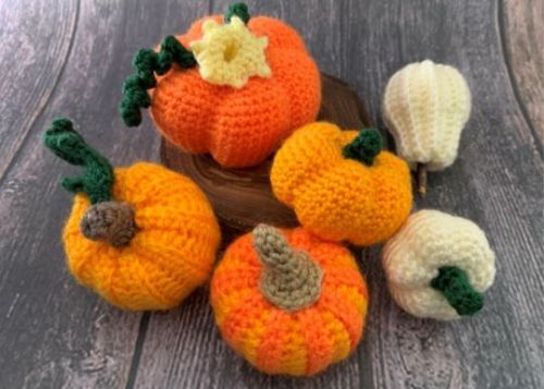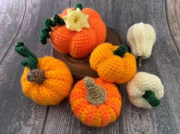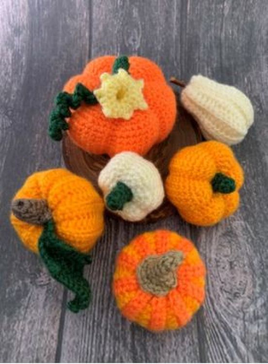 - detaillierte Beschreibung wie die einzelnen Kürbisse gehäkelt werden können