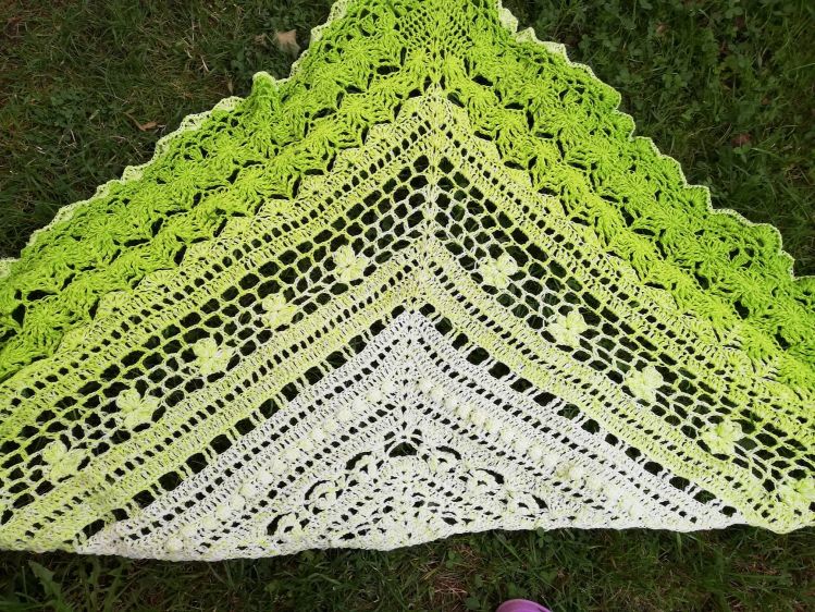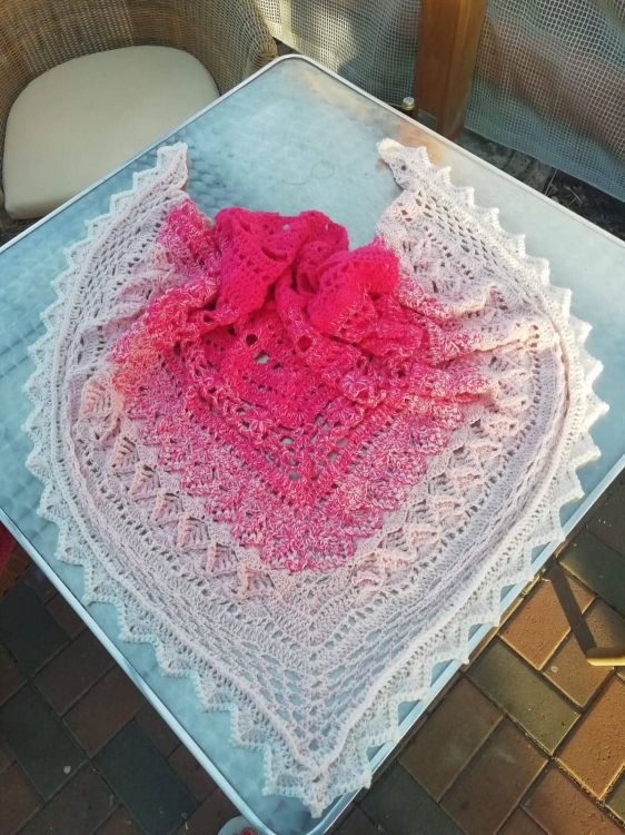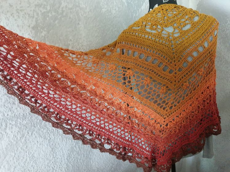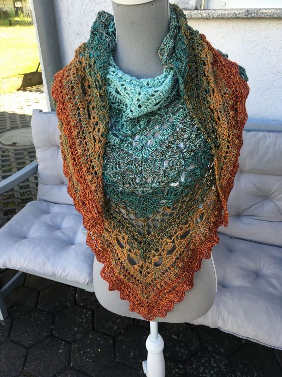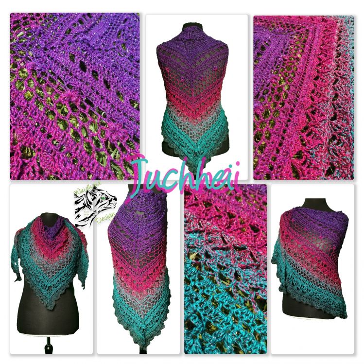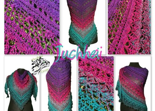 Ein verspieltes Tuch, mit dem wir die 100. Anleitung feiern und auch 5 Jahre Wuidkatz Design. Es ist quasi ein Best Of von meinen Lieblingstüchern