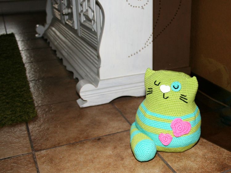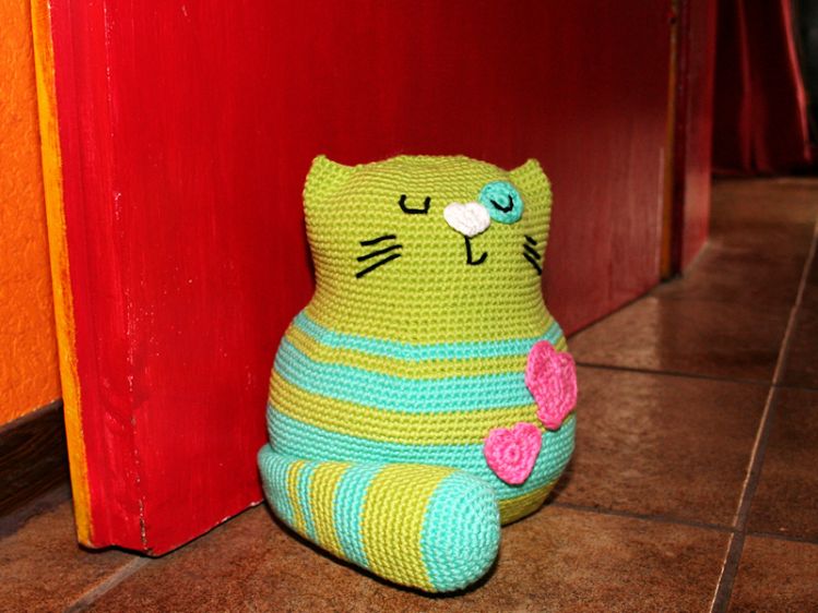 Wenn du die Katze komplett weich ausstopfst, wird sie nicht nur leichter, sondern auch ein schönes Kuscheltier. Die Türstopper-Funktion geht dann allerdings verloren. ;)