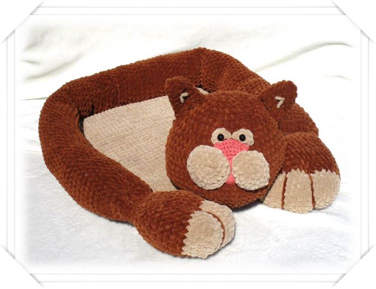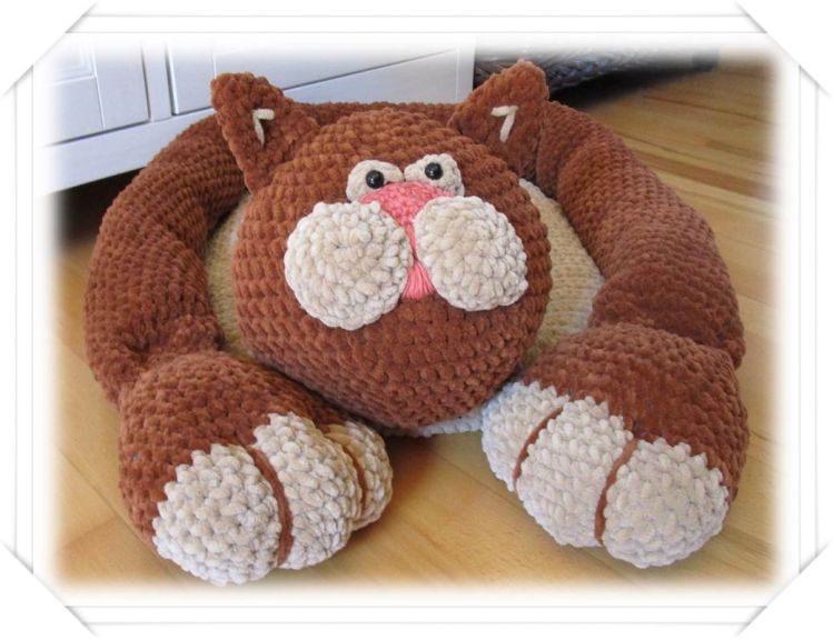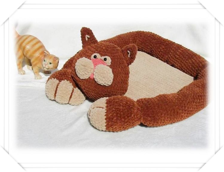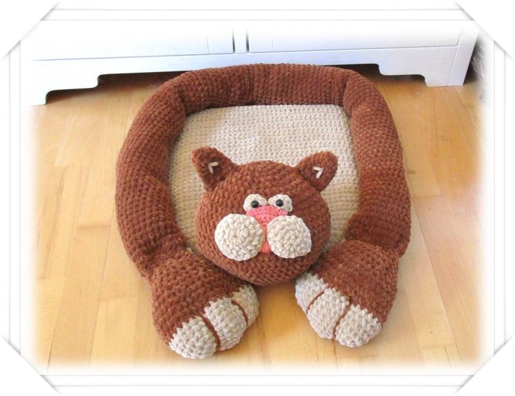 Durch die Chenille Wolle ist der Schlafplatz schön weich und kuschelig. Das tolle ist, die Katzenhaare lassen sich leicht entfernen :-)