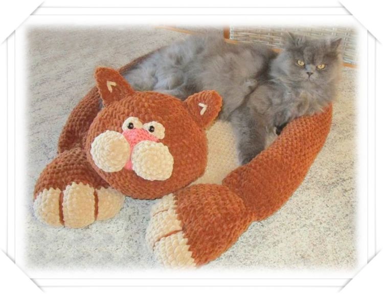 Dieses süße Katzenbett in Form eines Artgenossen ist der perfekte "große Kumpel" zum Wohlfühlen.