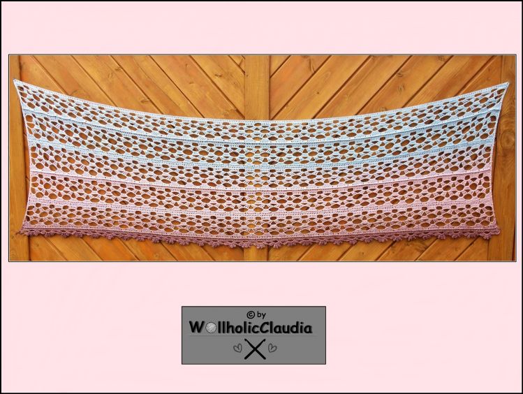 Diese gehäkelte Stola namens Blütentraum hat ein sehr luftiges Muster und ist perfekt für den Sommer. Auch für Hochzeiten oder andere festliche Gegebenheiten. Das Muster ist beidseitig tragbar, ob als Schal, Tuch, Stola oder Überwurf, hier sind viele Tragevarianten möglich.
