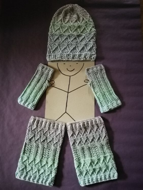 Diese Beanie ist auch im Set mit passendem Loop/Schal, Beinstulpen und Armstulpen erhältlich: