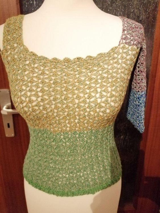 Beim vorgestellten Produkt handelt es sich NICHT um das fertig gehäkelte Kleidungsstück, sondern um eine Anleitung in Schriftform mit Häkelschrift, um dieses Kleidungsstück selbst zu häkeln.