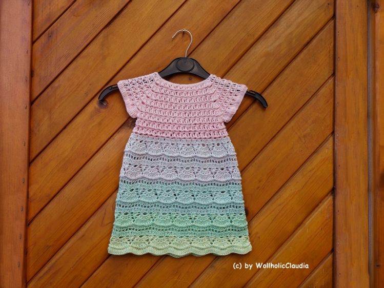 Ein wunderschönes Kleid für alle kleinen und großen Damen. Das Kleid wird an einem Stück von oben nach unten gearbeitet (Raglan von oben) und ist somit perfekt geeignet für Farbverlaufsgarne. Im Rücken ist eine Knopfleiste eingearbeitet. Du kannst es ganz individuell in der Weite, Länge und Größe anpassen.
