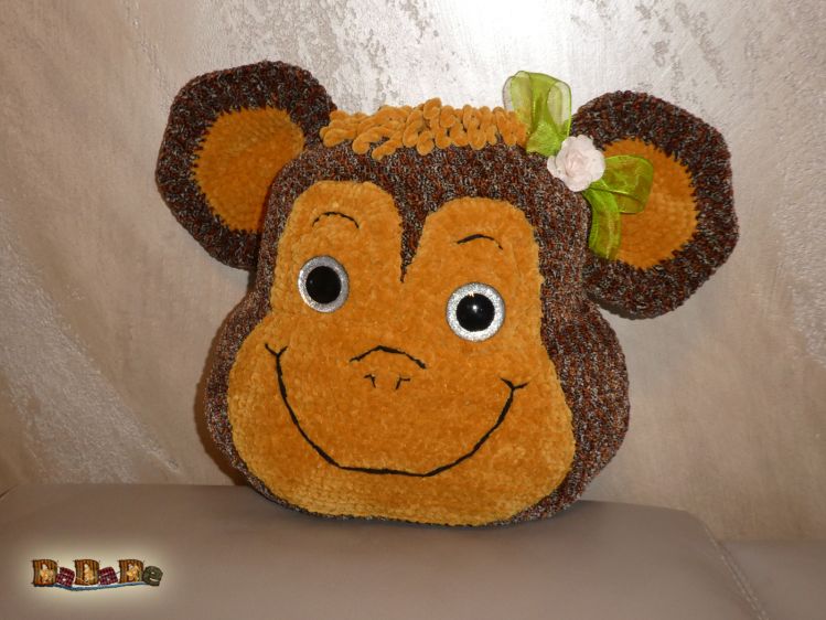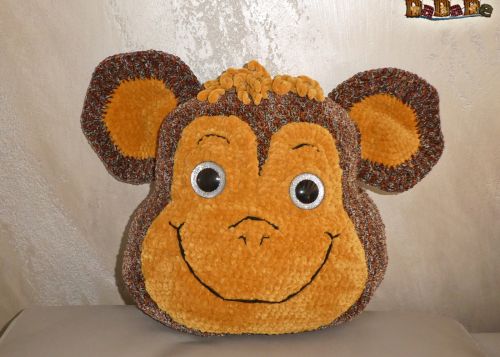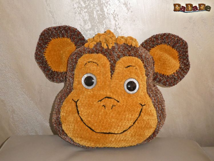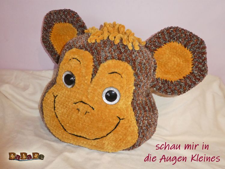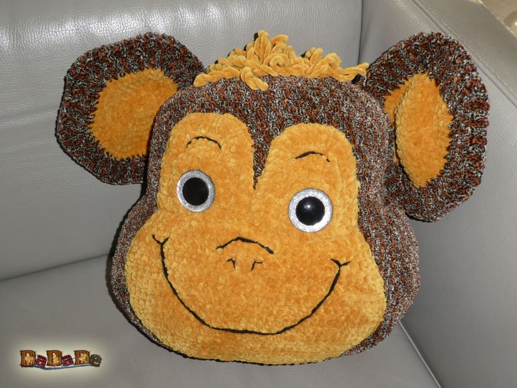 Hier kauft man nur die Häkelanleitung für dieses weiche, kuschelige Affen-Kissen.