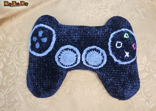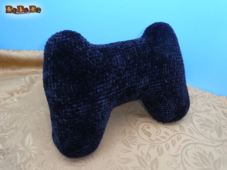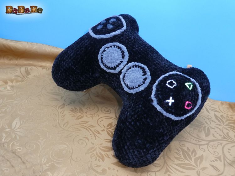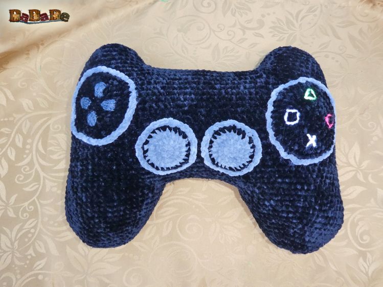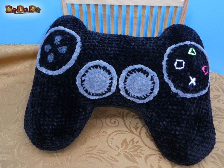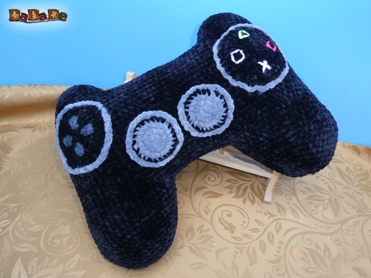 Ein dekoratives Nackenkissen, das wie ein Game-Controller aussieht, auf dem man schön bequem seinen Kopf ablegen kann
