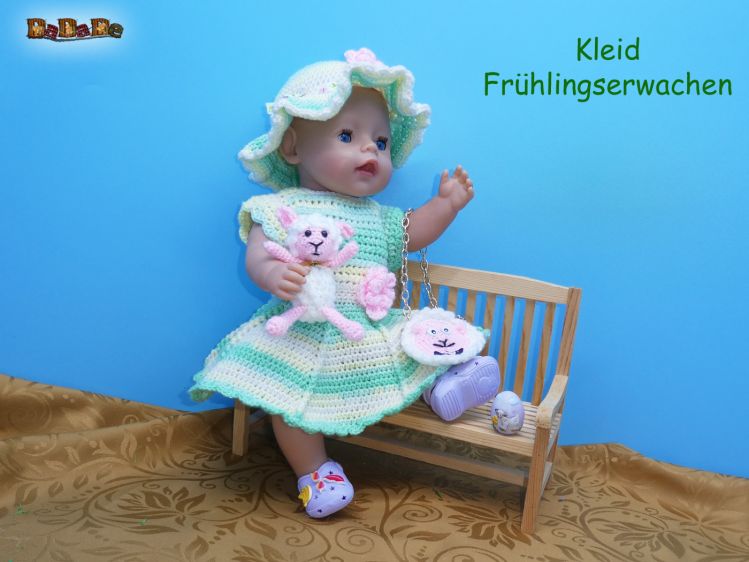 Kleidchen für Puppen-Größe 43cm, Häkelanleitung von DaDaDe