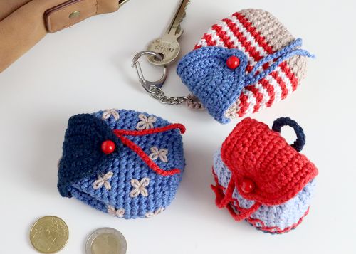 Durch den Einsatz der Doppelmasche sind die Rucksäcke wunderbar zum Besticken geeignet. Hier sind keine Grenzen gesetzt - du kannst sie wie gezeigt mit Kreuzstich oder Blümchen besticken, aber auch mit Zickzackstich, Hexenstich etc. Natürlich kannst du auch die Farben und die Farbaufteilung so variieren wie es dir gefällt.
