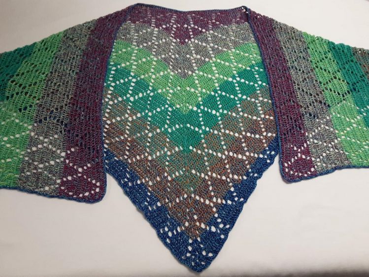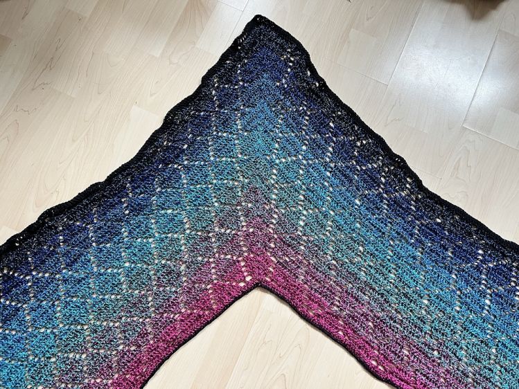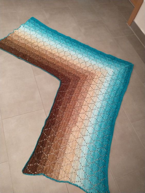 Dieser Knick-Schal oder auch Knick-Stola gehört zu einer Reihe aus drei Anleitungen, die aber jede für sich alleine stehen. Dies ist die zweite Anleitung. Diese sind in Gedenken an meine am 10.04.2021 an Krebs verstorbene Schwester. Ich hatte ihr einen Bobbel zu Weihnachten 2020 geschenkt, um ihr, wenn es ihr besser geht, damit das Häkeln beizubringen. Leider ist es nicht mehr dazu gekommen. Sie bat mich kurz vor ihrem Tod aus diesem Bobbel für einen ihrer drei Lieben, Ehemann, Sohn oder Tochter, ein Andenken zu häkeln. Ich habe mir den Bobbel von einer ganz lieben Wicklerin nachwickeln lassen, damit alle drei etwas Besonderes aus den gleichen Farben bekommen.