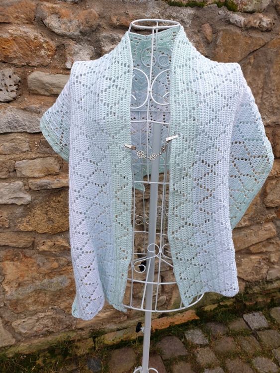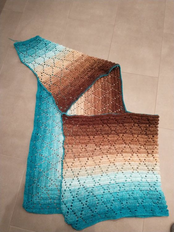 Die Größe ist absolut variabel, von Kinderschal bis XXXXXL Kuschelstola (Fastdecke ;-)) alles ist möglich, bei genug Geduld und Wollvorrat, da das Muster unendlich wiederholt werden kann.