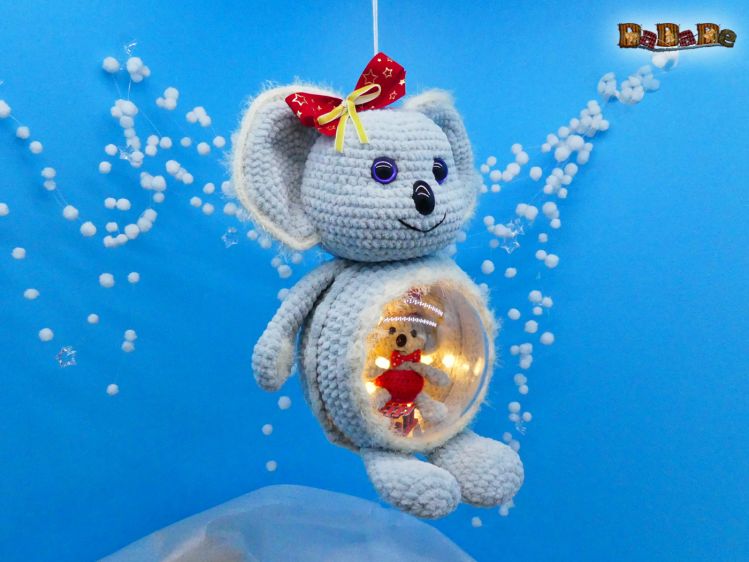 Mit der Nadelstärke 4 gehäkelt ist die Koala-Kugel ist ungefähr; 34cm hoch