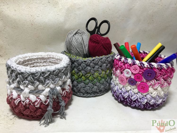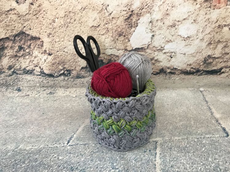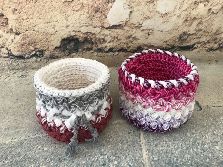 Kleine Utensilos, Stifteboxen und Behälter für alles Mögliche kann man immer gut gebrauchen. Auch zum Verschenken oder als Mitgebsel gut geeignet. Außerdem sind sie ganz toll, um Eure kleinen und großen Wollreste zu verhäkeln.