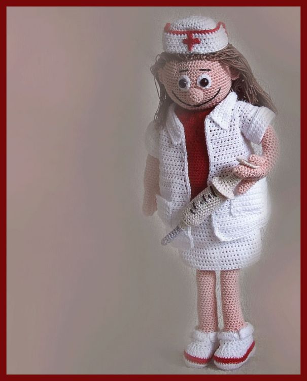 * De pop wordt (bij gebruik van haaknaald 3) 40 cm groot.