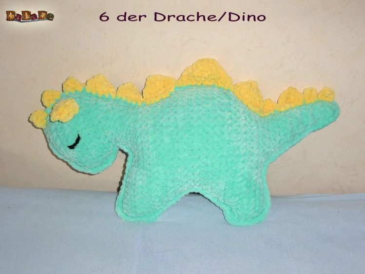 Sie kaufen hier die Anleitungen dieses kuschelige Dino-Kissen