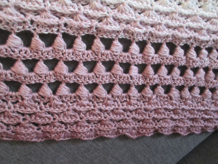 Durch das einfache wiederholen der Maschen ergibt sich dieses wunderschöne Muster.Das Muster kann beliebig groß gehäkelt werden somit kannst Du die Optik Deines Tuches selbst bestimmen!