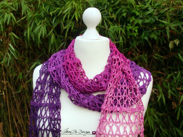 Der Schal Cruzada besticht durch sein nicht alltägliches Muster und ist ein sehr luftiges Accessoire - nicht nur für den Sommer.