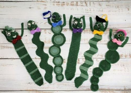 Mit dieser Anleitung kannst du 6 verschiedene Bücherwürmer häkeln. Sie lassen sich beliebig kombinieren (Accessoires, Körper, Farben etc), je nach Wunsch und Laune! Die kleinen Bücherwürmer werden die Augen jeder kleinen und großen Leseratte zum Strahlen bringen!