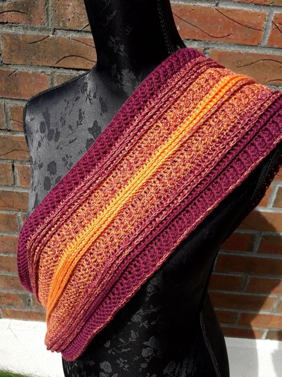 Durch die Reliefstäbchen entsteht ein sehr schönes, dichtes und effektvolles Muster, welches beidseitig getragen werden kann.