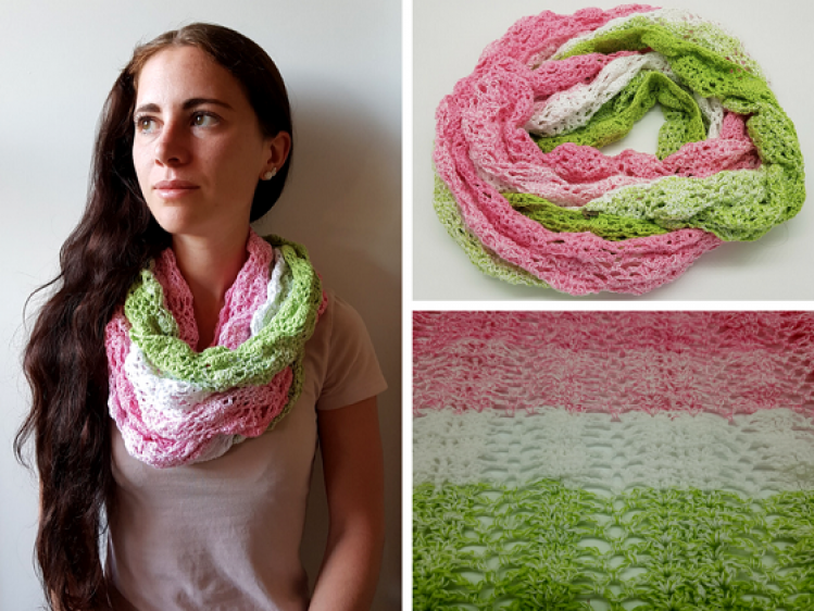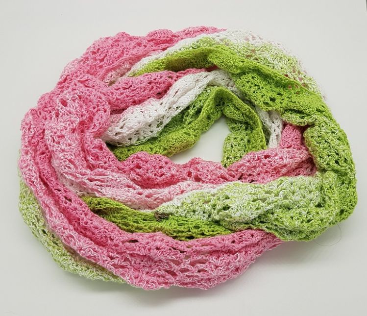 - Je nach Wunsch kann der Loop auch länger und breiter gehäkelt werden (Anleitung enthalten).