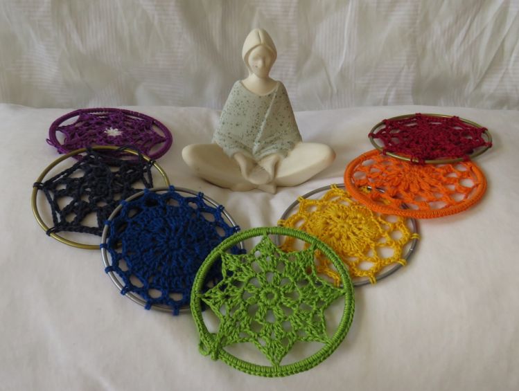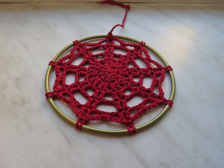 Du brauchst ein Rest Garn, eine Häkelnadel Nr 2,5, diesen Metallring und meine Anleitung. Dann kannst du schon loslegen.