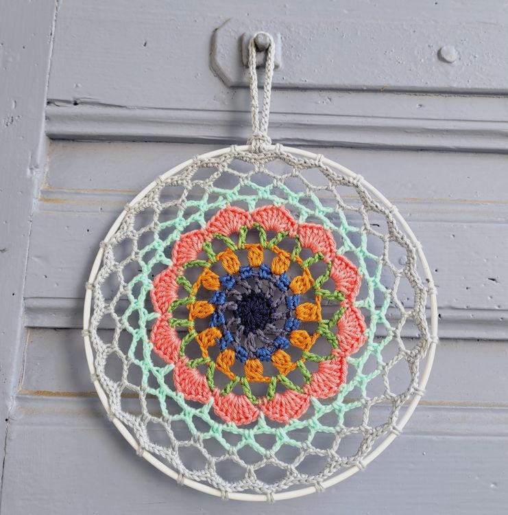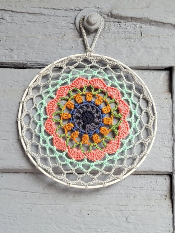 Das Mandala Strandflieder ist eine Erinnerung an die Nordsee. Meer, Strand und Himmel sind hier farblich vereint und der beliebten Küstenpflanze Strandflieder ist auch Raum gegeben. Dabei ist das Mandala nur 18 cm im Durchmesser und besteht aus anfängerfreundlichen ersten Häkelmaschen. Eine schöne Wohndeko, auch, wenn du andere Farben verwendest und immer auch ein tolles Geschenk für einen lieben Menschen.