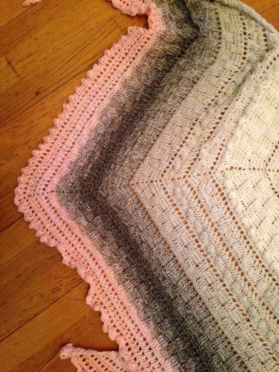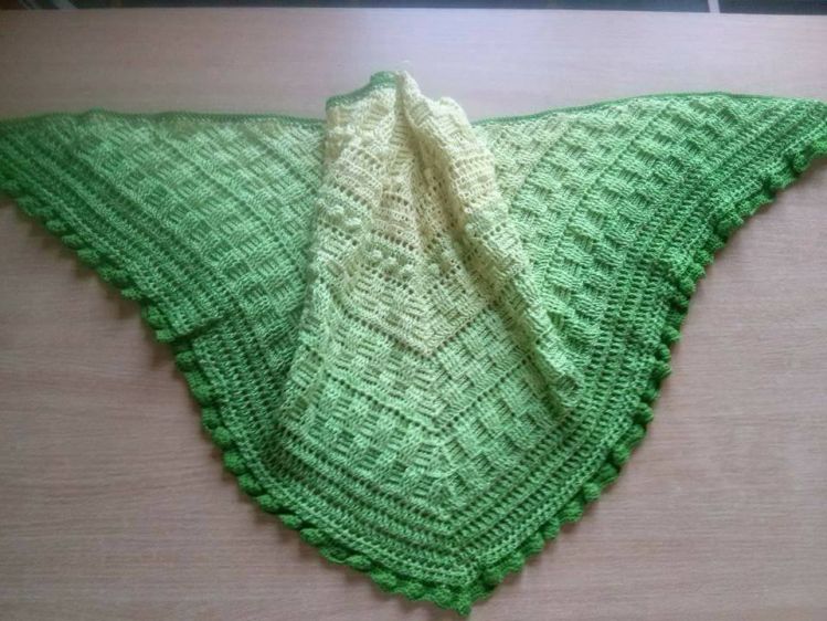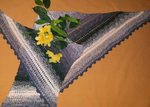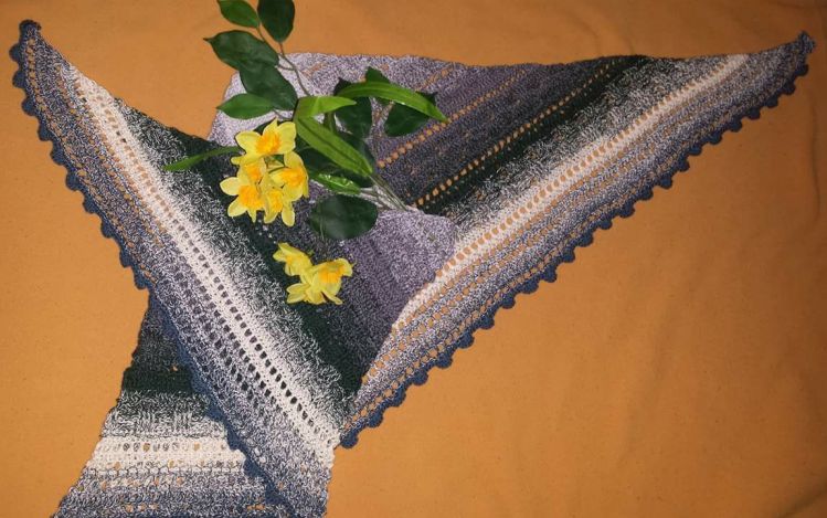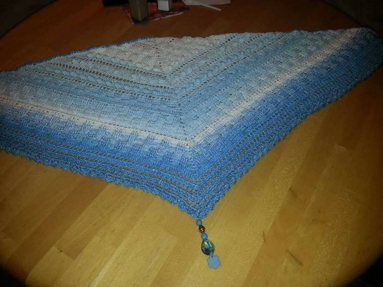 Das Tuch wird ca. 180 mal 70 cm groß , wenn Ihr euch an meine Garn und Nadel Stärken Angaben haltet.