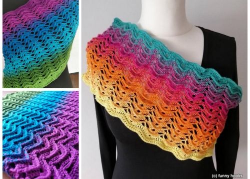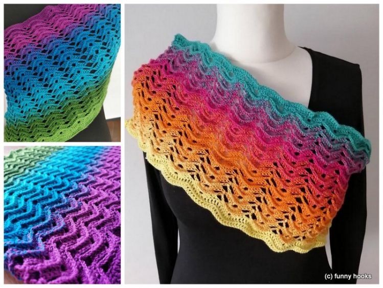 “Merak” ist der kleine Bruder vom “pafugl”. Merak bedeutet ebenfalls Pfau auf Javanisch. In der Tunika Pafugl gibt es das tolle Muster 3 und dieses ist viel zu schade, um es nur als Tunika zu arbeiten. Deshalb kommt hier der “Pfau” in Loop-Form.
