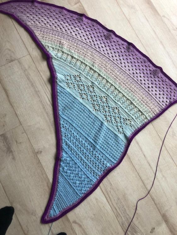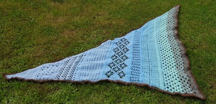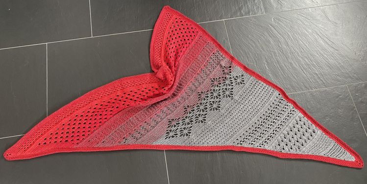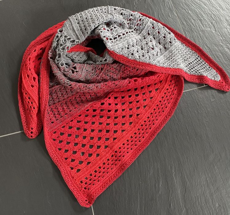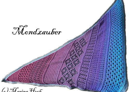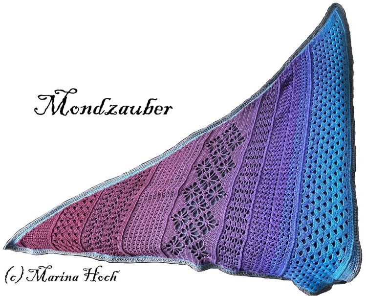 Bei „Mondzauber“ handelt es sich um ein Dreieckstuch, welches von der spitzen Seite her gehäkelt wird.