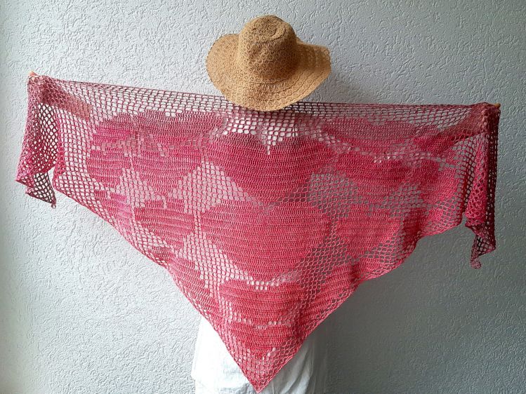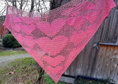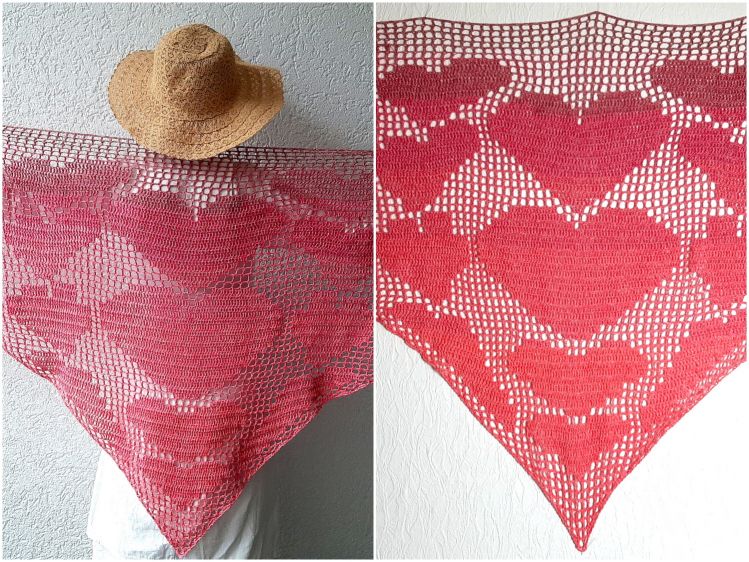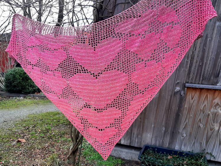 Das Dreieckstuch "Herz Dame" ist ein tolles Tuch mit vielen kleinen Herzen, welche ein großes Herz ergeben. Mit dem Tuch sind Komplimente garantiert! Das Dreieckstuch wir von der unteren Spitze nach oben gearbeitet. Filethäkeln ist gerade für Anfänger sehr gut geeignet. Aber Vorsicht! Suchtgefahr!