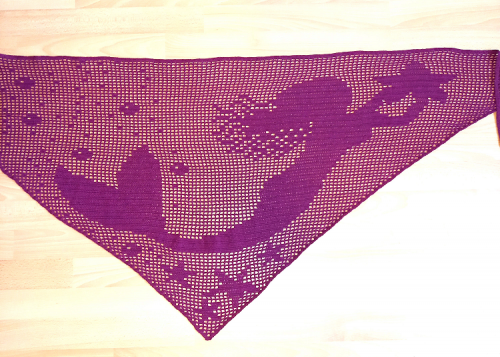 Ein romantisches Motivtuch mit Meerjungfrau und Sternen :-) Perfekt für Anfänger geeignet - in meiner Anleitung findest du eine genaue Erklärung zur Filettechnik sowie ein Zählmuster in 2 verschiedenen Größen :-) Der Beginn des Tuches wird mit Bildern genau erklärt.