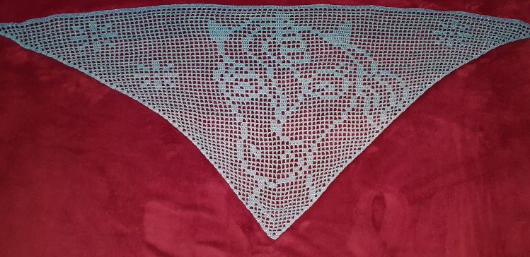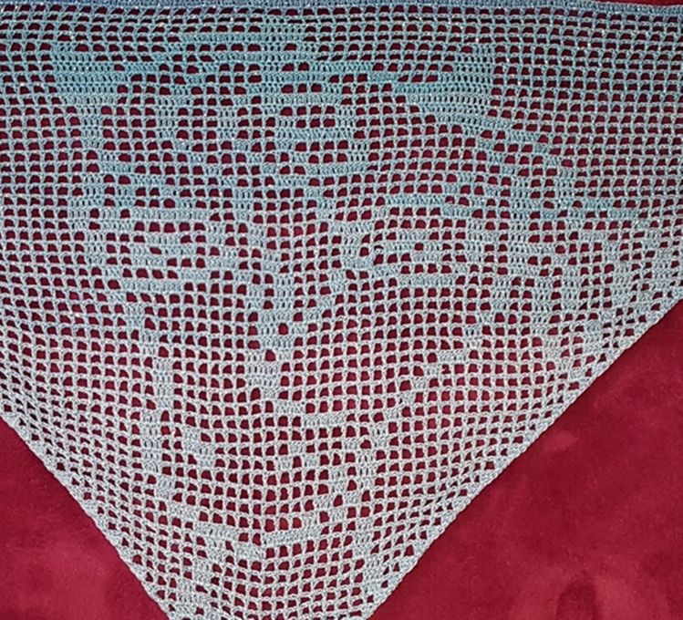 Gehäkelt wird von unten nach oben. Benötigt werden Grundkenntnisse beim Häkeln von Luftmaschen, Stäbchen und Doppelstäbchen. Das Motivtuch wurde mit einem dreifädigen Farbverlaufsgarn gehäkelt. Verwendet wurden ca. 400 Meter. Damit hat das Tuch eine Größe von etwa 145x60 cm.