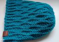 Wolle: myboshi No. 2, Farbe Petrol, 2 Knäuel. Der Faden wird doppelt genommen.